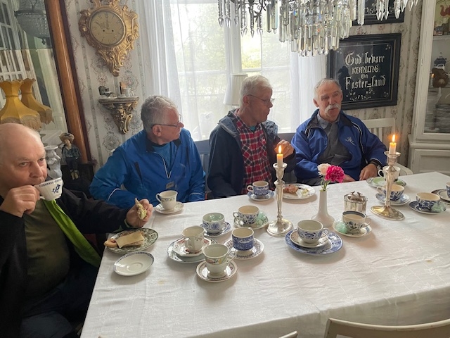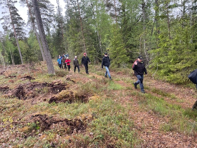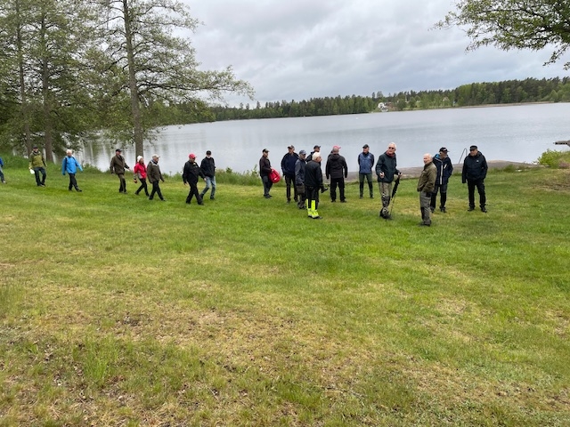 Regnig vandring i Berga där långa med 31 vandrare gick 6 km runt Älgsjön och förbi Elsabo. Korta med 10 vandrare gick 4,3 km på motionsspåret inklusive några hittaut-kontroller. Efteråt bjöds det på fika på Café Tre Århundraden med 50 personer där även damgruppen var med. En ny vandrare Arne Palmborg.