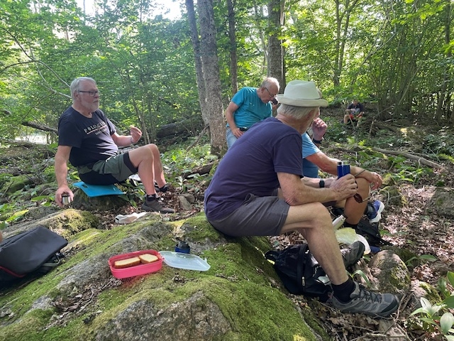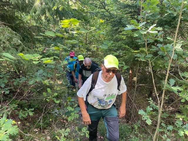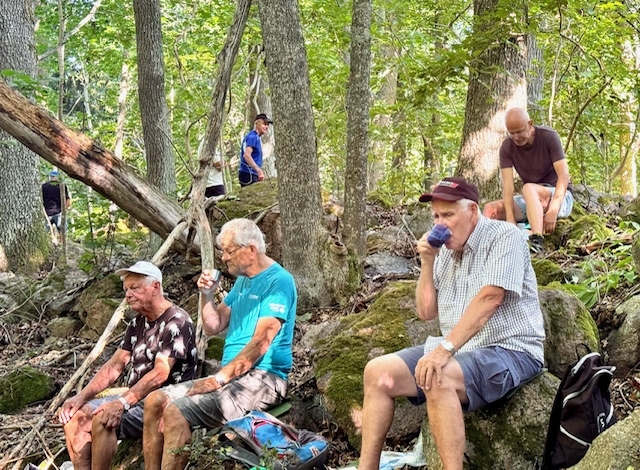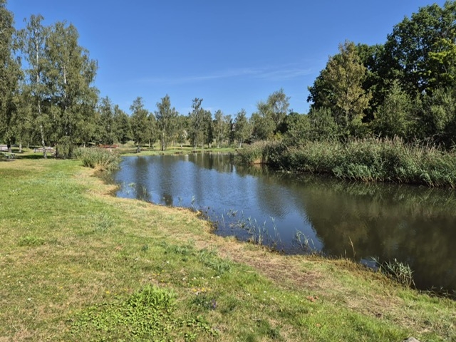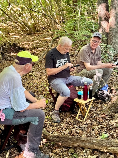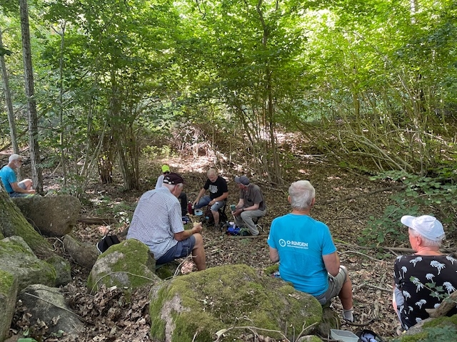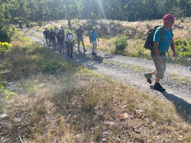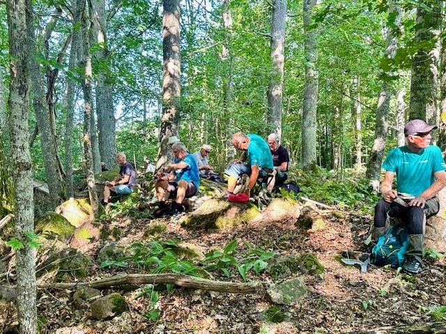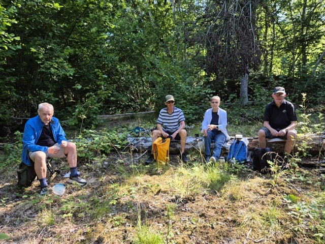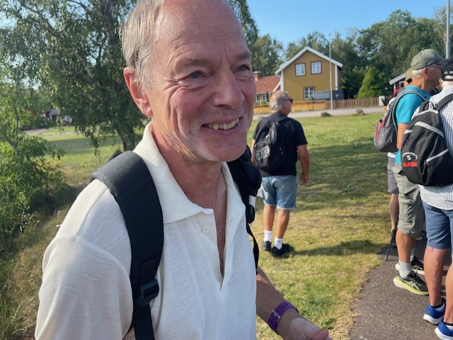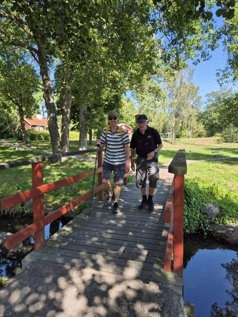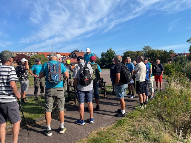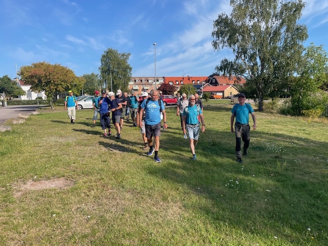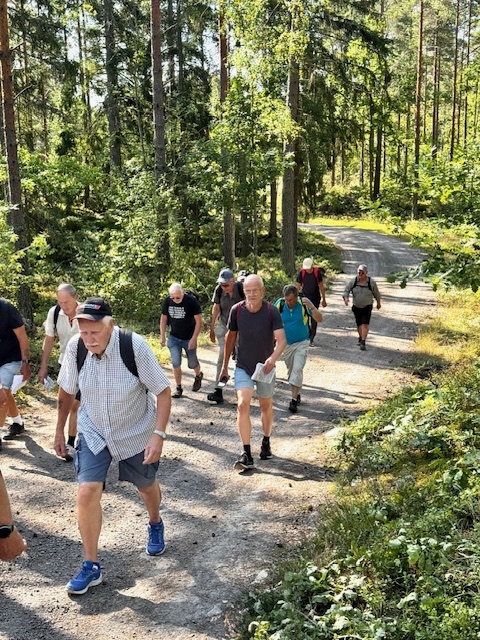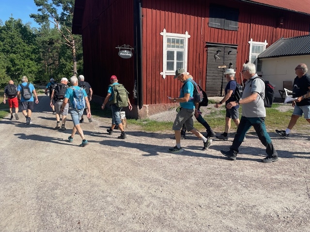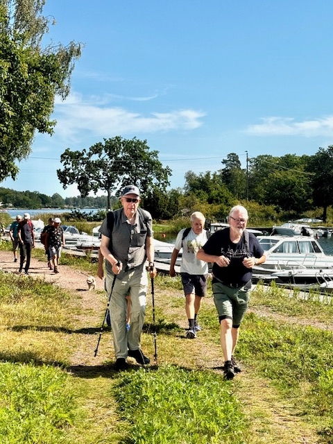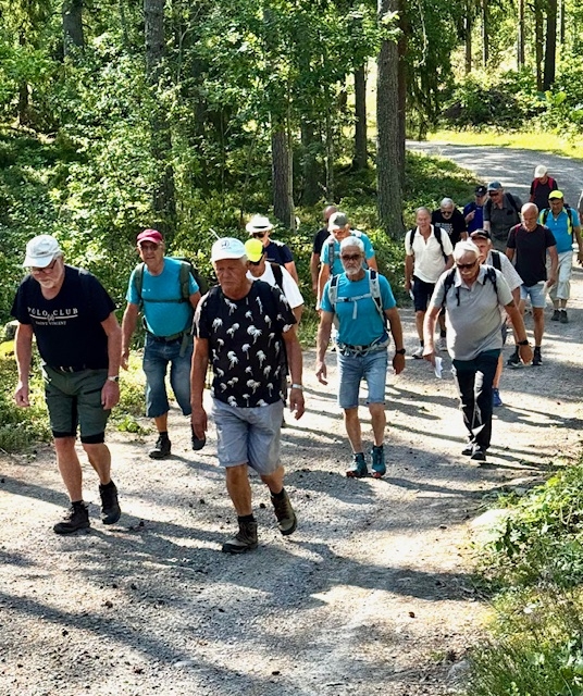 Solig och varm vandring 23 grader i och runt Figeholm. 22 man på långa 9 km och 5 på korta 5,5 km. Två nya vandrare Torbjörn Nilsson och Roland Johansson.