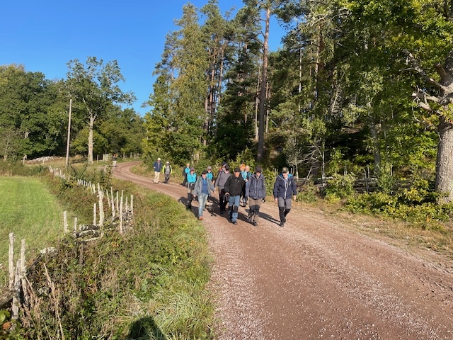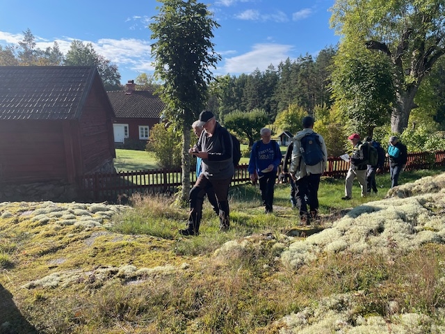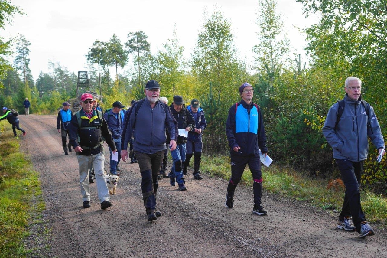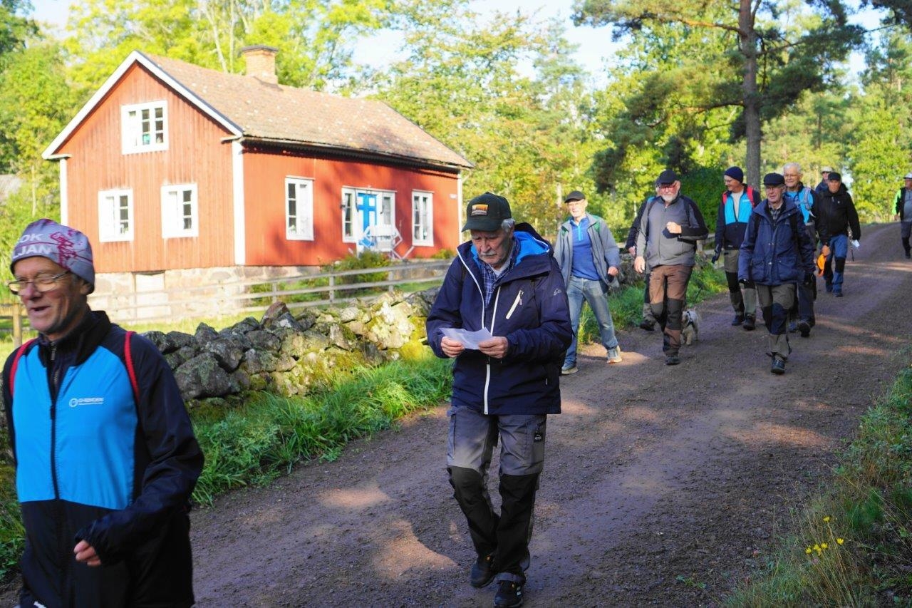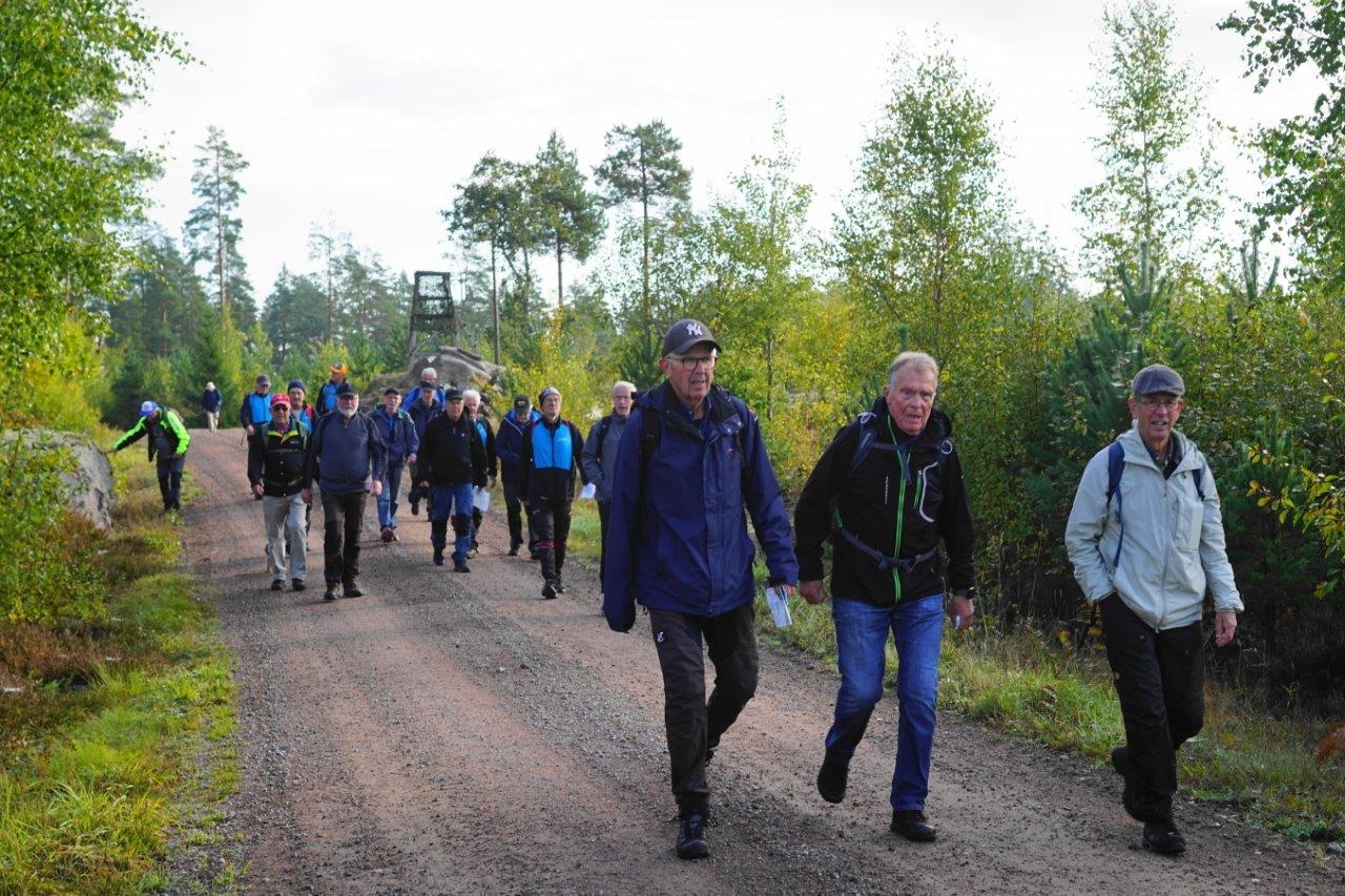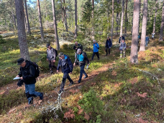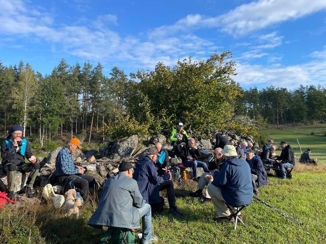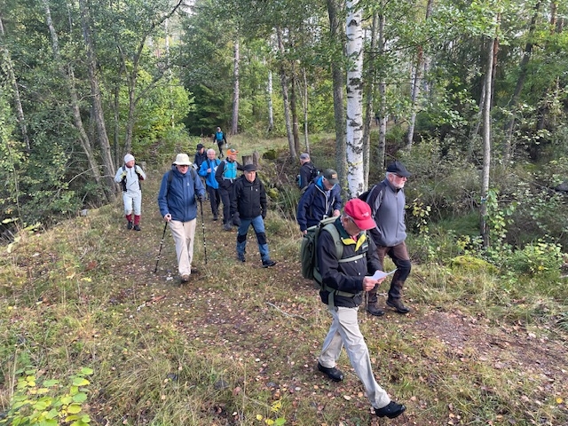 Solig vandring från 4 upp till 12 grader. Rundan gick via Sanden, Äspemåla och gamla minkfarmen. 20 man på långa 8,5 km och 6 på korta 6,2 km.