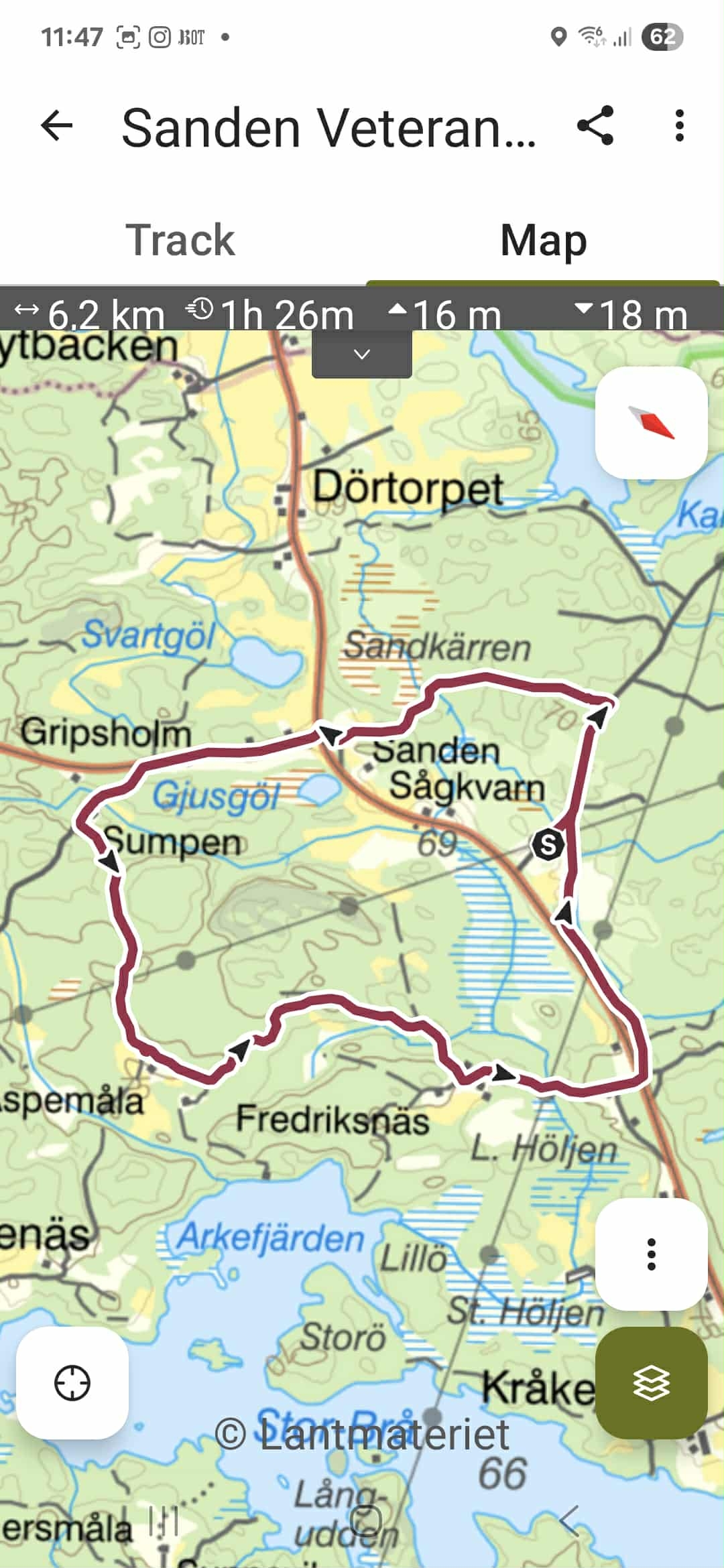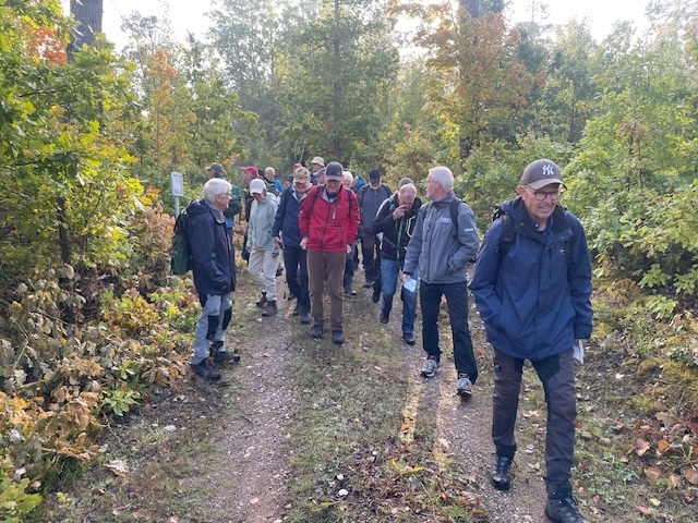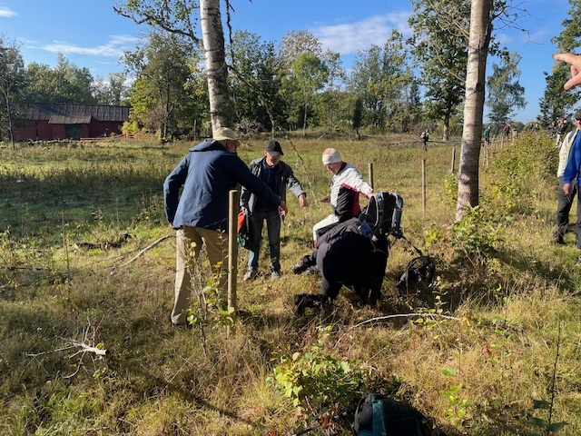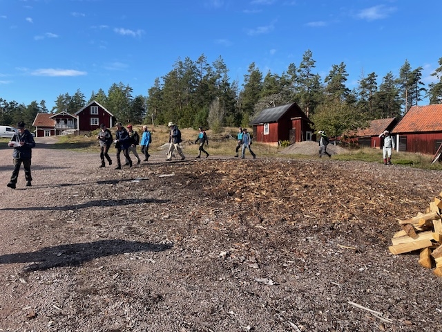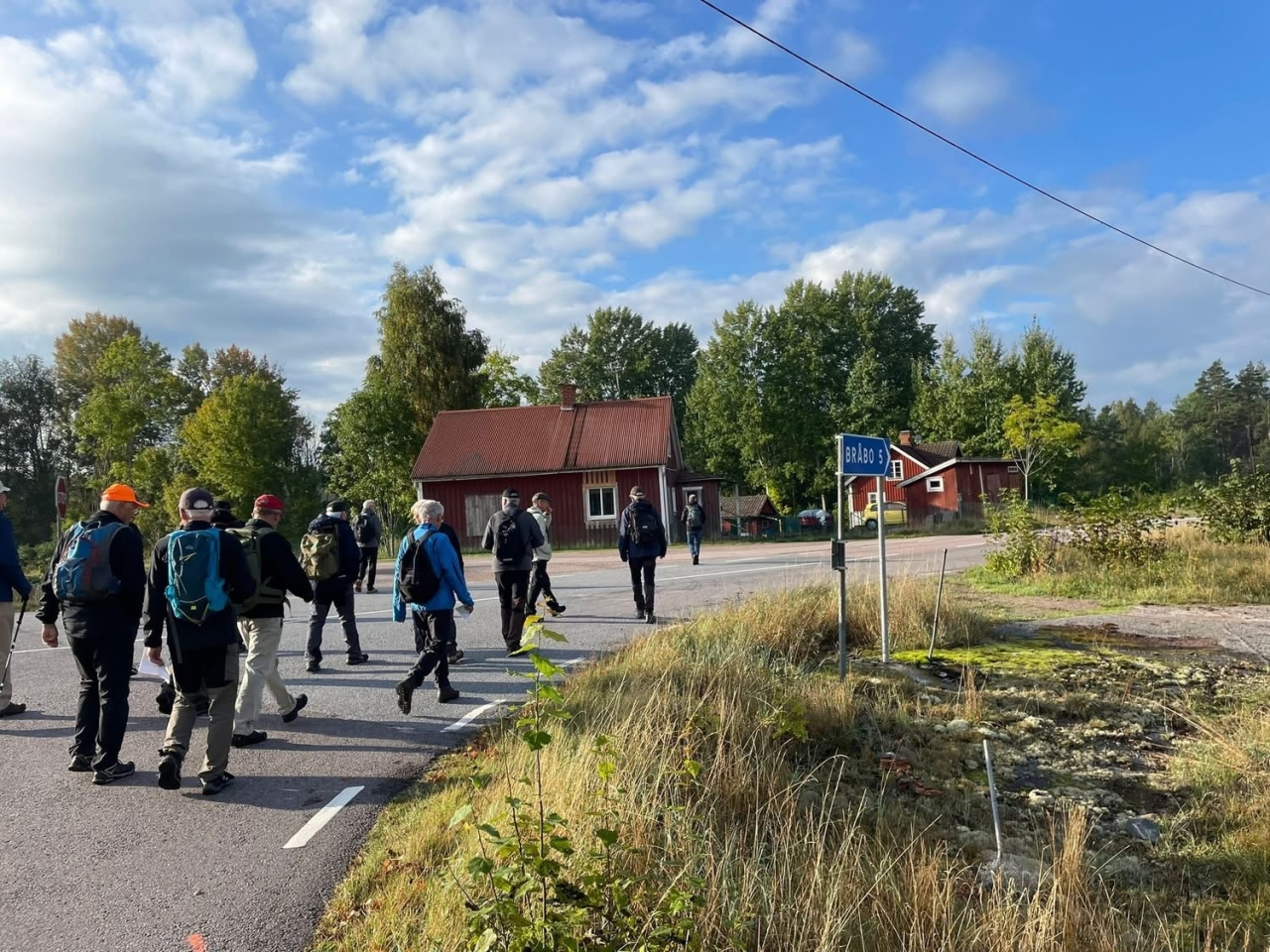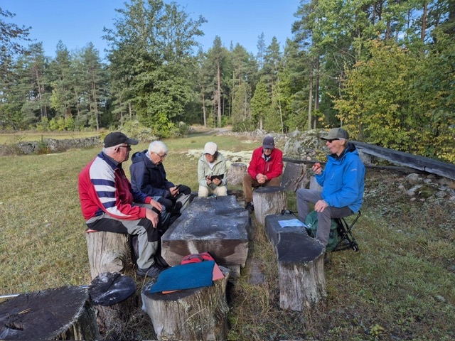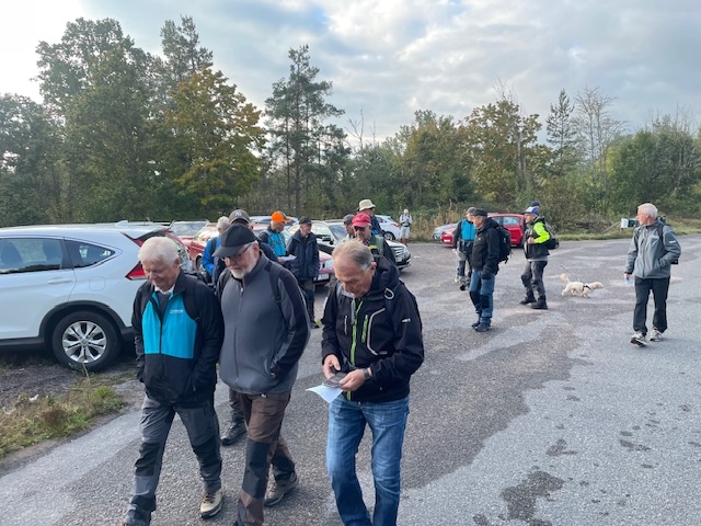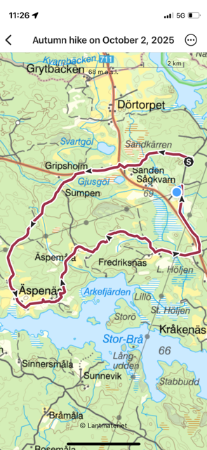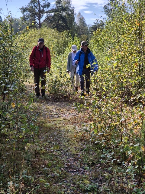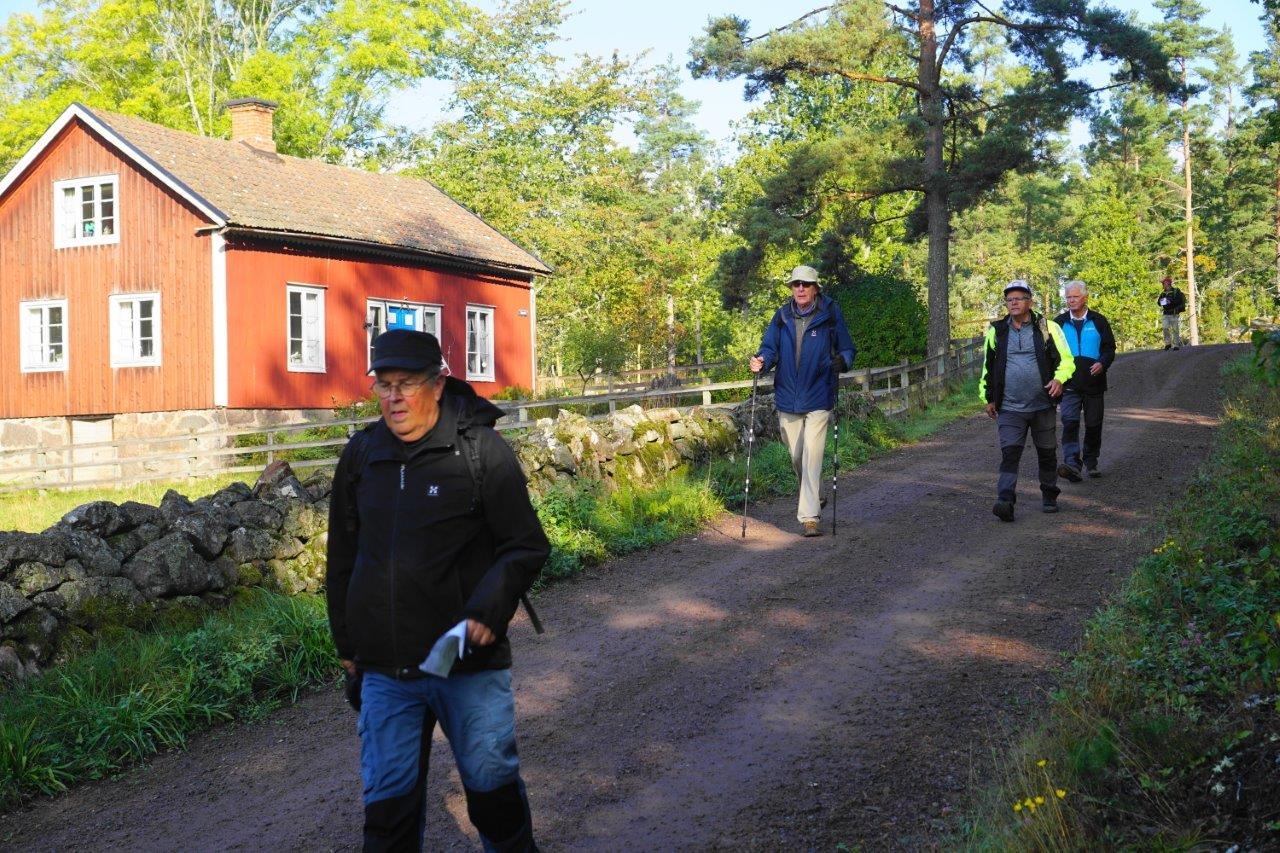 Solig vandring från 4 upp till 12 grader. Rundan gick via Sanden, Äspemåla och gamla minkfarmen. 20 man på långa 8,5 km och 6 på korta 6,2 km.