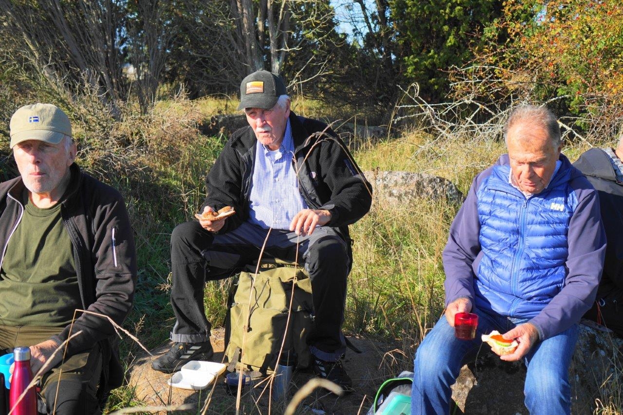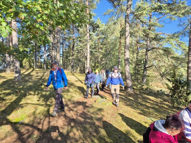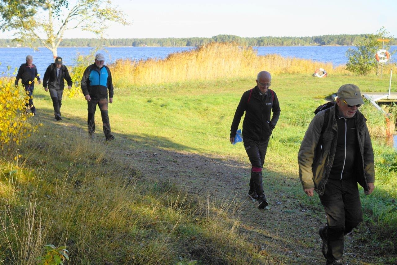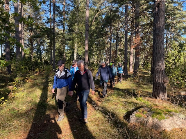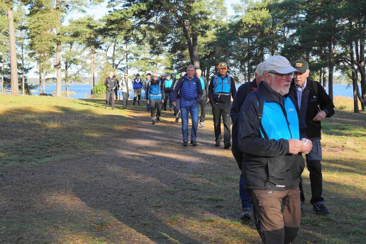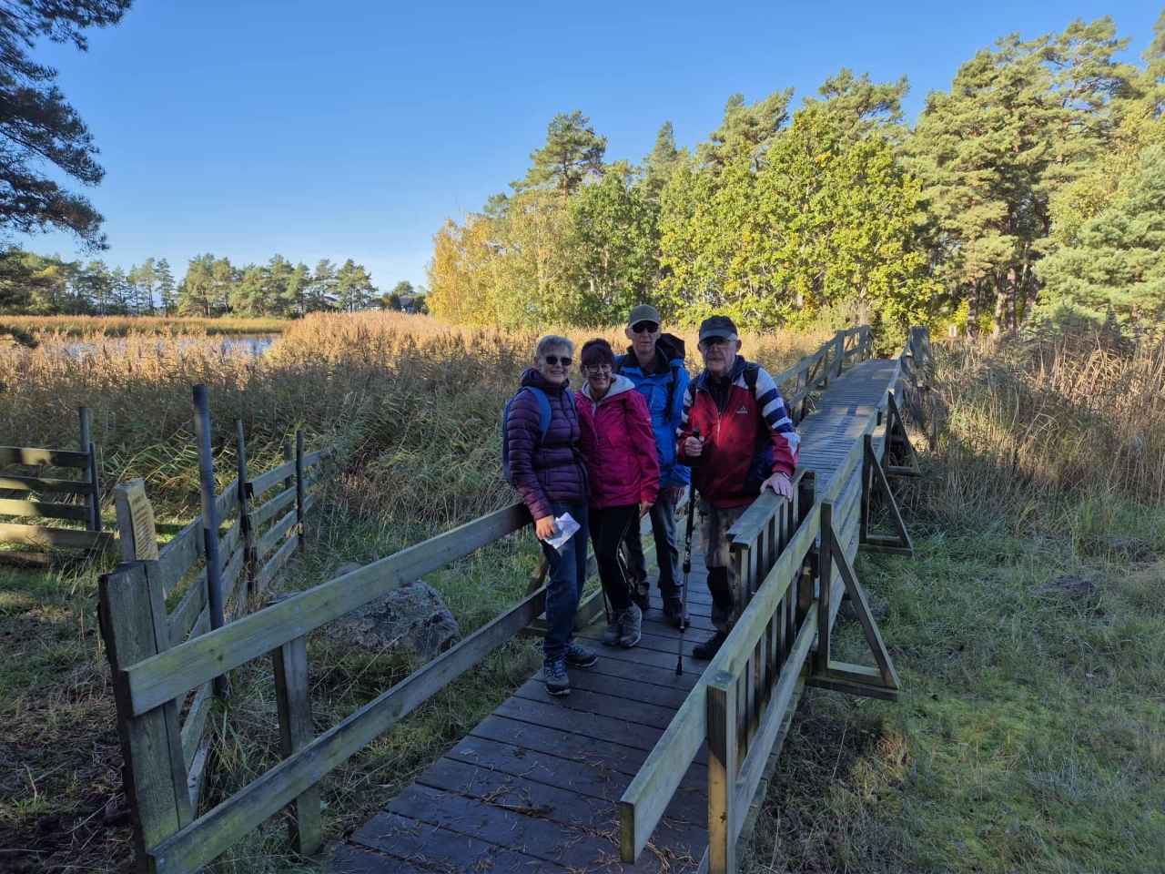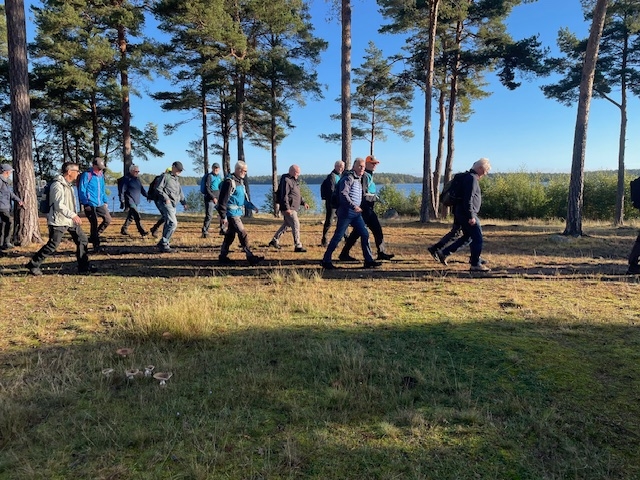 Traditionella Oknövandringen i solsken och 14 grader. 23 vandrare på långa 9 km och 5 på korta 6,2 km. Foto: Hans-Göran Johansson, Hans Törngren, Göran Svenson.
