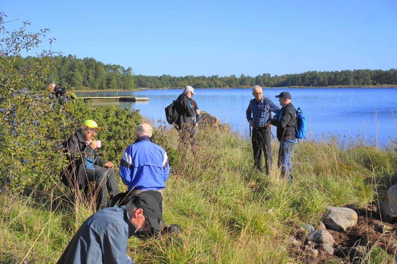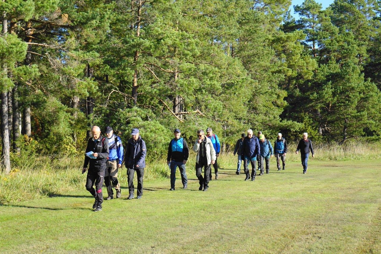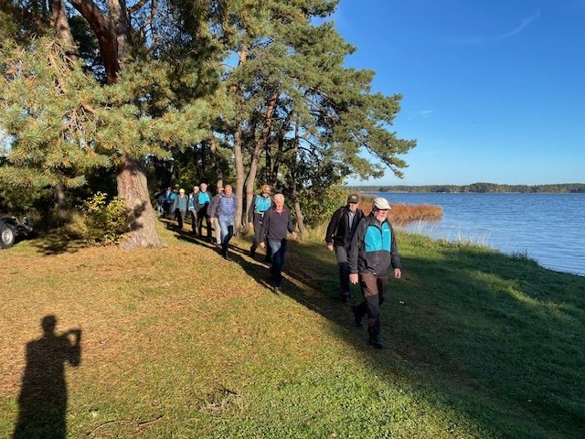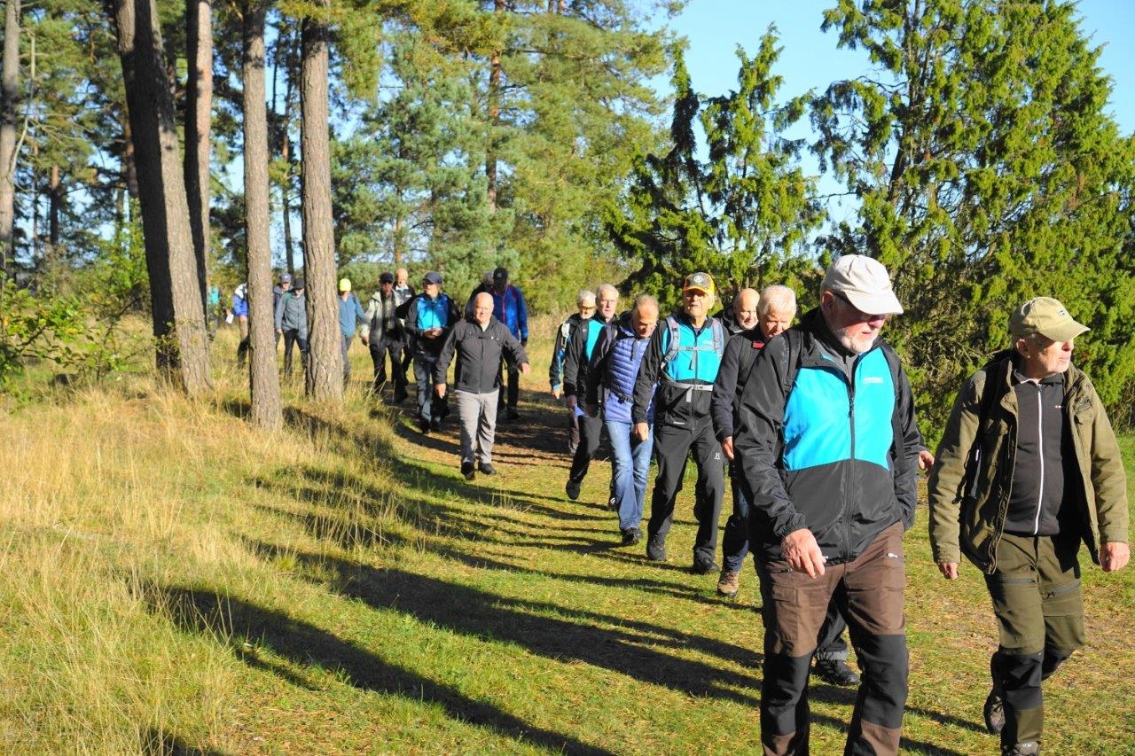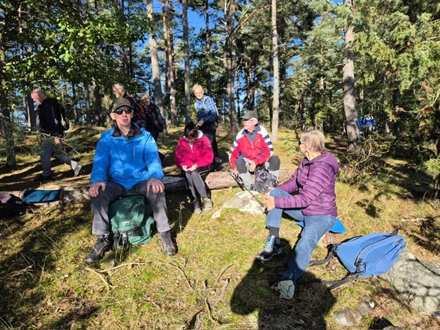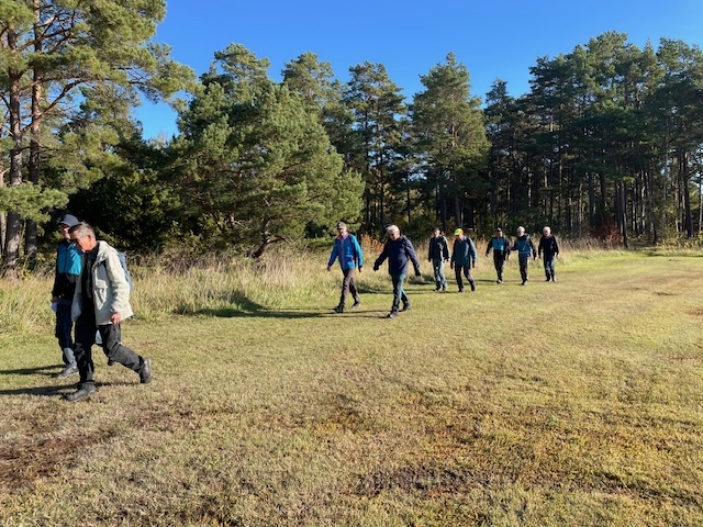 Traditionella Oknövandringen i solsken och 14 grader. 23 vandrare på långa 9 km och 5 på korta 6,2 km. Foto: Hans-Göran Johansson, Hans Törngren, Göran Svenson.