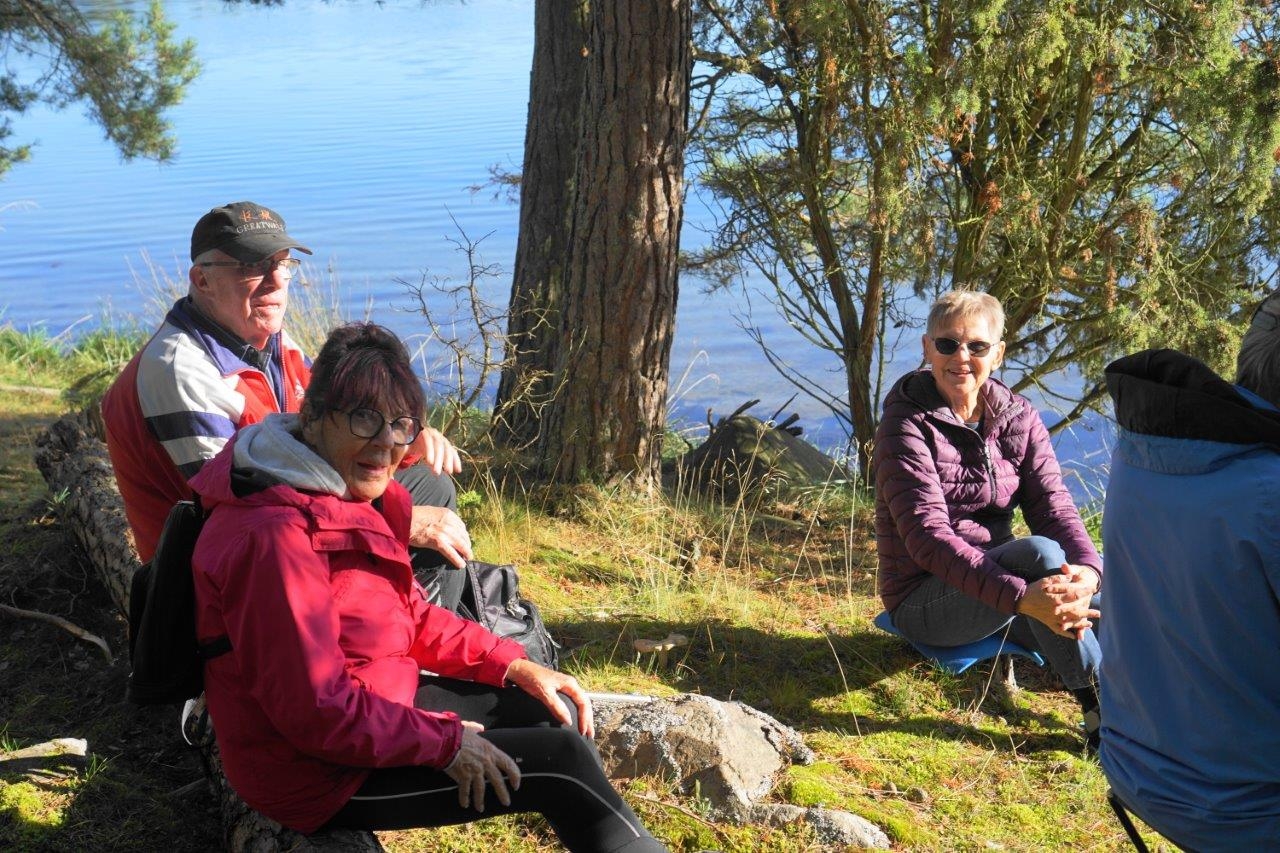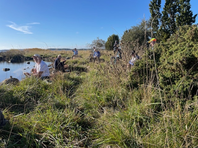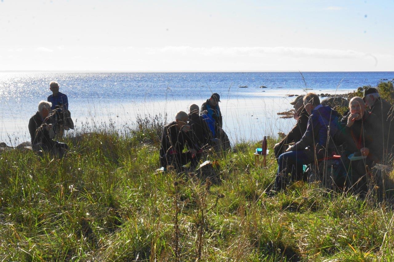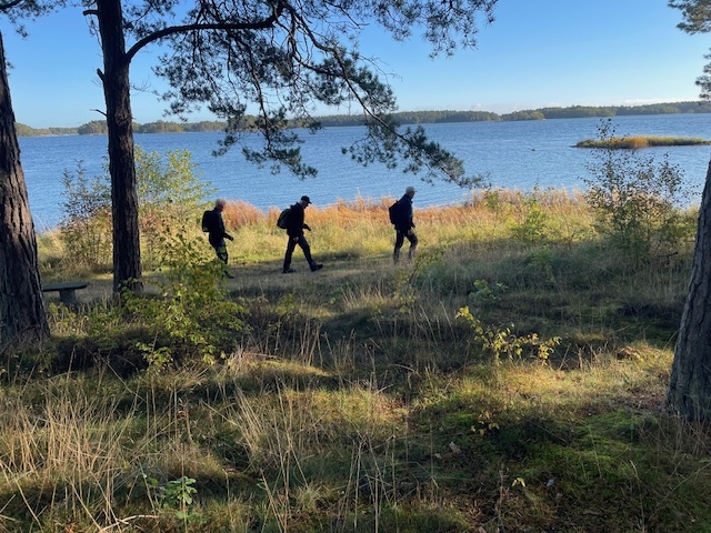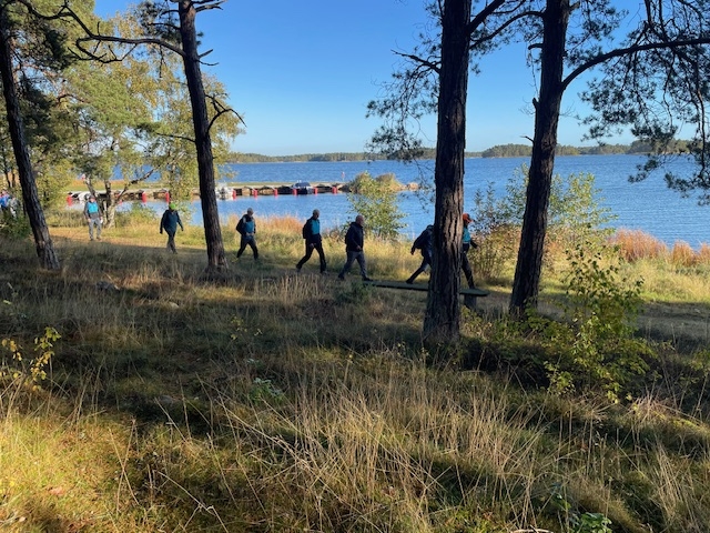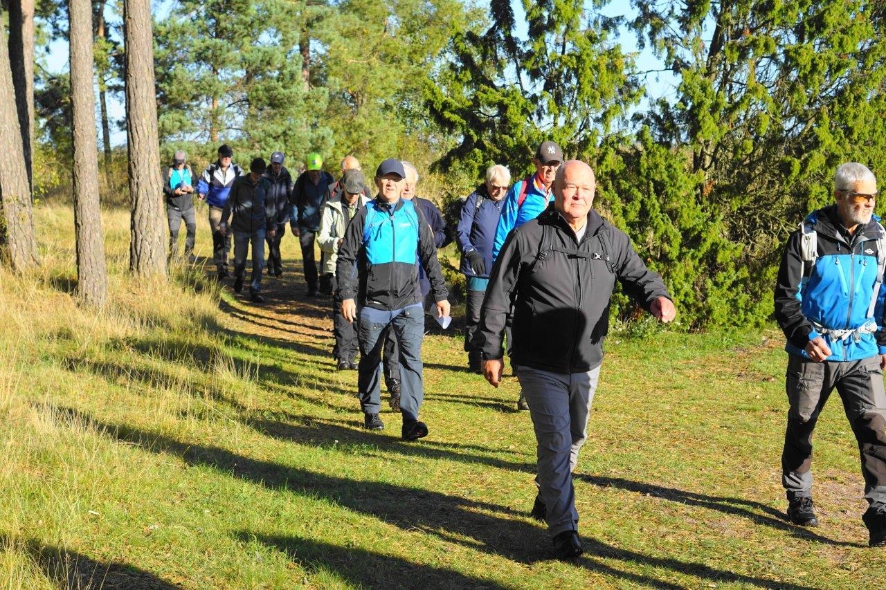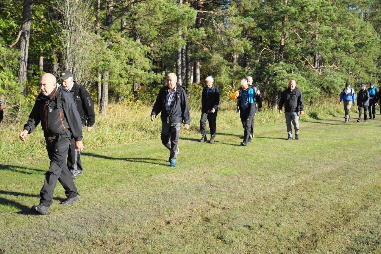 Traditionella Oknövandringen i solsken och 14 grader. 23 vandrare på långa 9 km och 5 på korta 6,2 km. Foto: Hans-Göran Johansson, Hans Törngren, Göran Svenson.