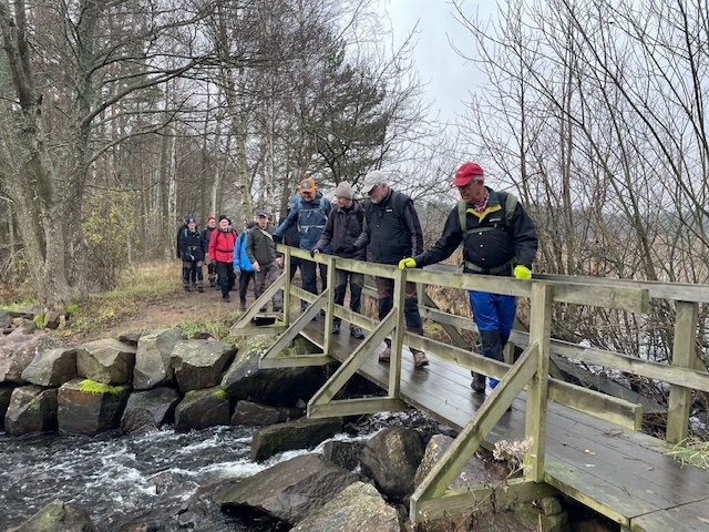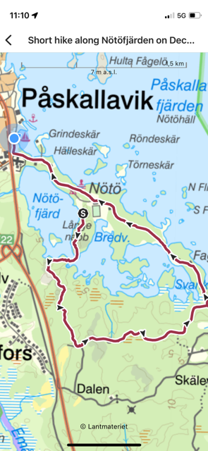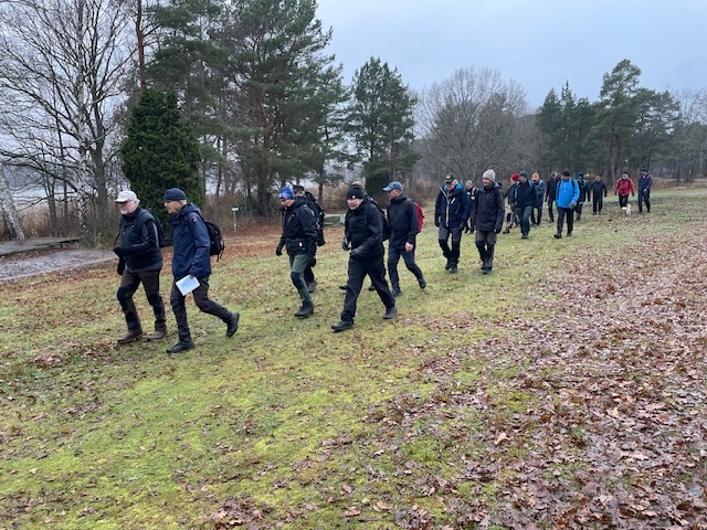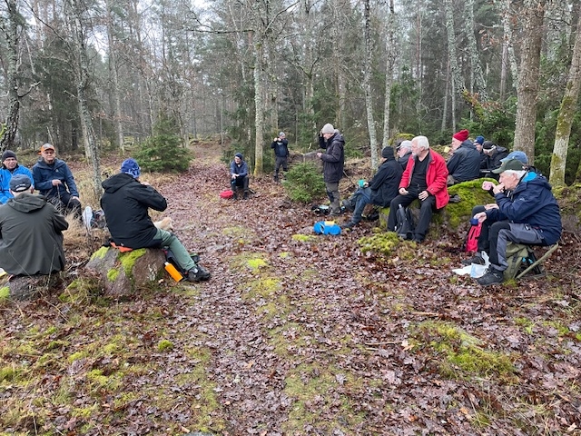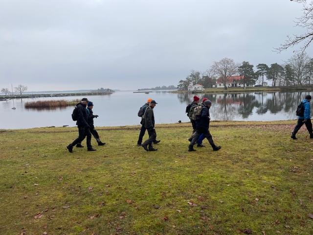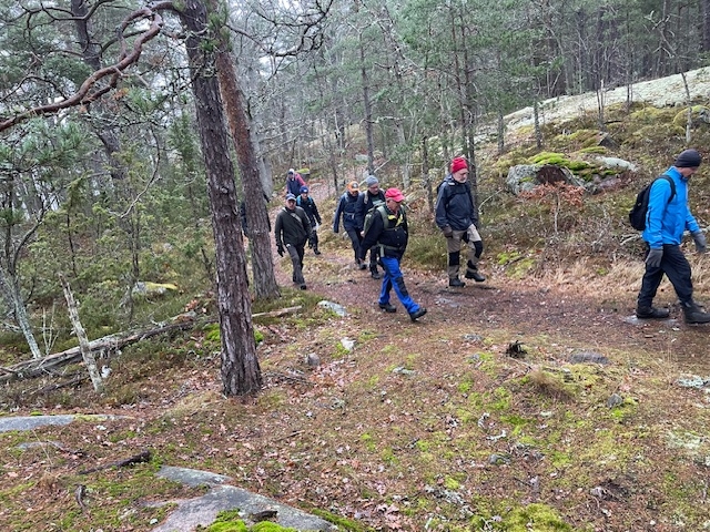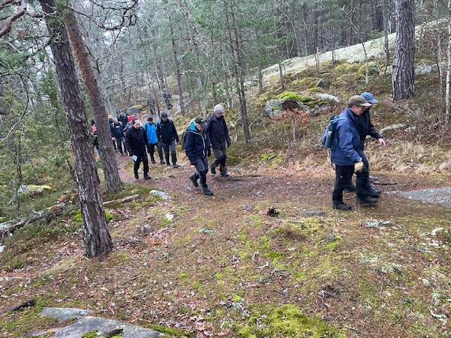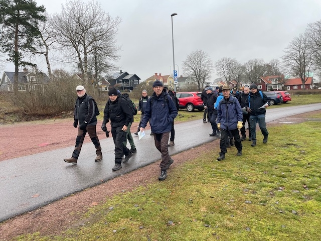 Grådisig vandring med cirka 5 grader. Långa 7 km med 23 man från kyrkan via Nötö och Skälevik. Korta 4,5 km med 8 vandrare lite längre söderut. Foto: Göran Svenson.