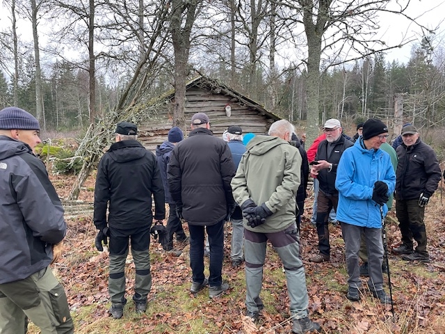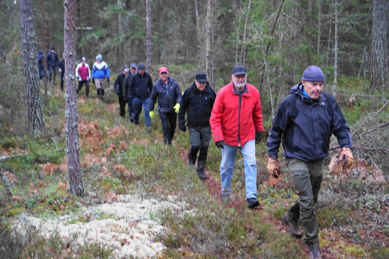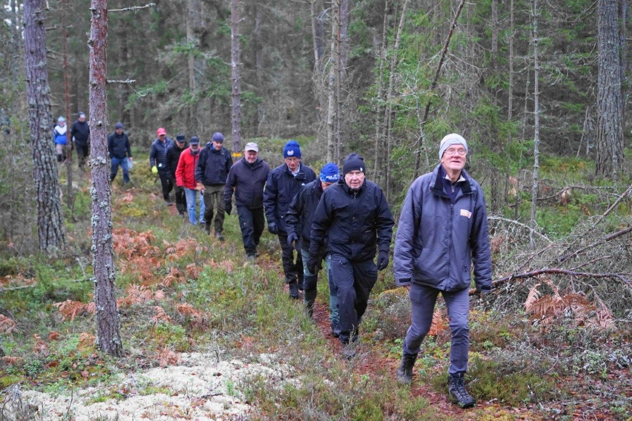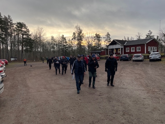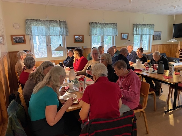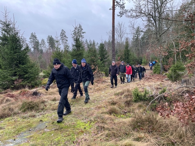 Traditionella vandringen till tomten vid Sylves lada, 5 km. 27 vandrare på den lite längre rundan och 10 på lite kortare. Mulet och ett flertal plusgrader. Gröt i stugan för cirka 60 personer. Stort tack till Kerstin, Kerstin, Marie-Louise och Britt-Marie som fixade kalaset!