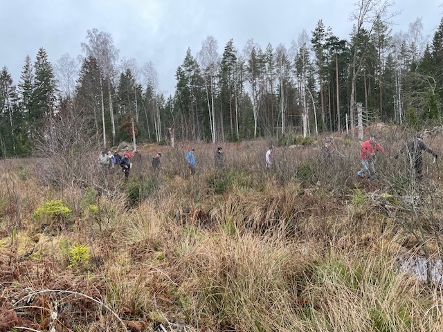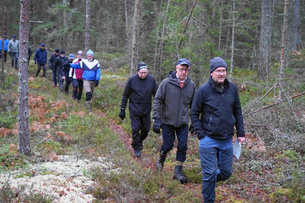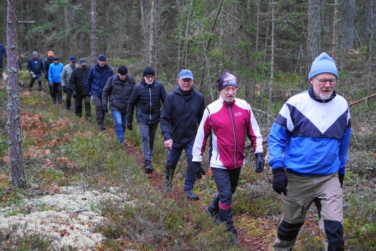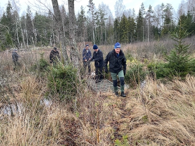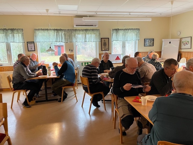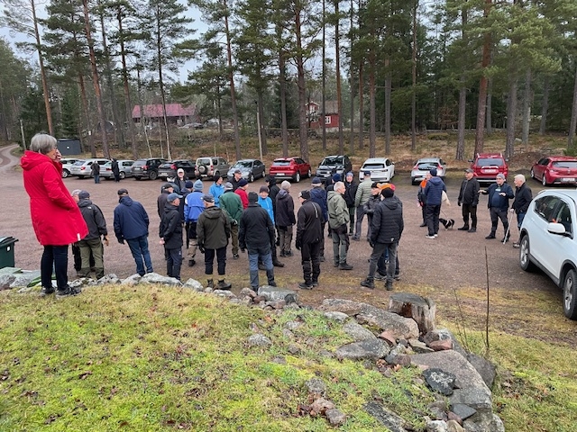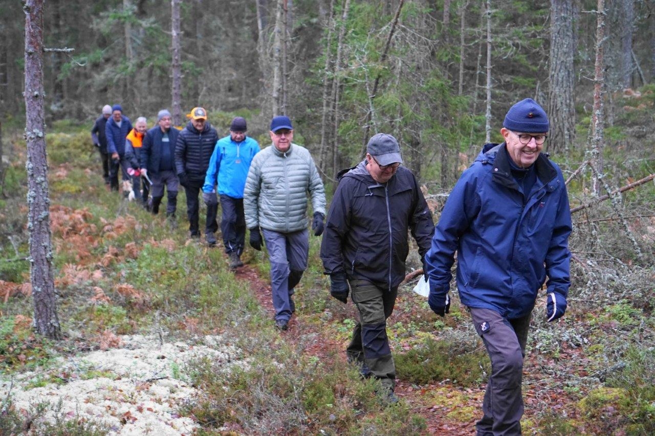 Traditionella vandringen till tomten vid Sylves lada, 5 km. 27 vandrare på den lite längre rundan och 10 på lite kortare. Mulet och ett flertal plusgrader. Gröt i stugan för cirka 60 personer. Stort tack till Kerstin, Kerstin, Marie-Louise och Britt-Marie som fixade kalaset!