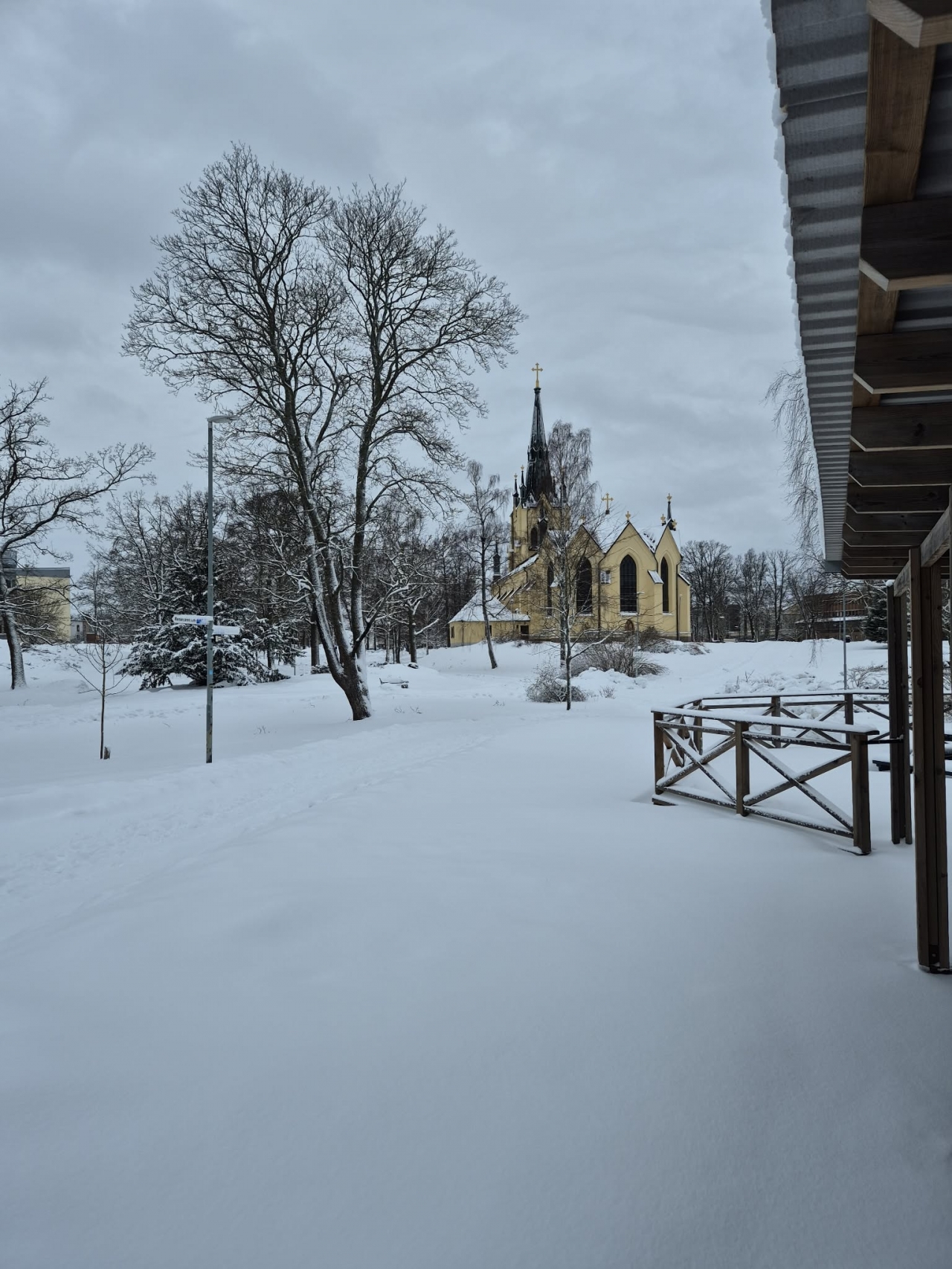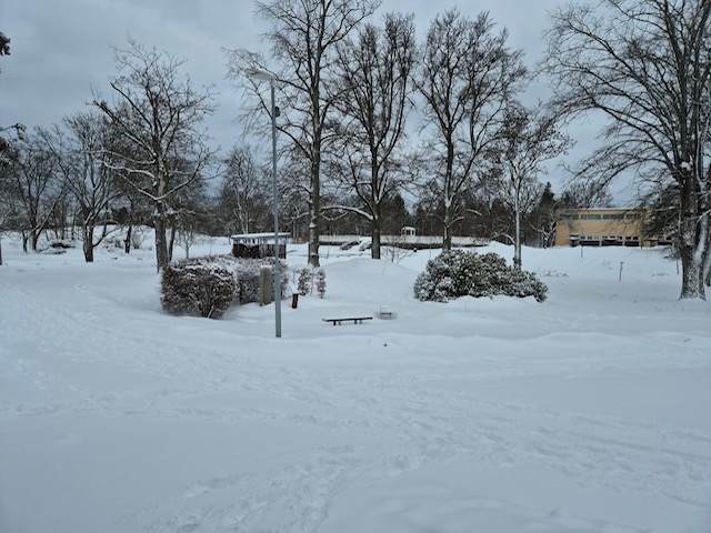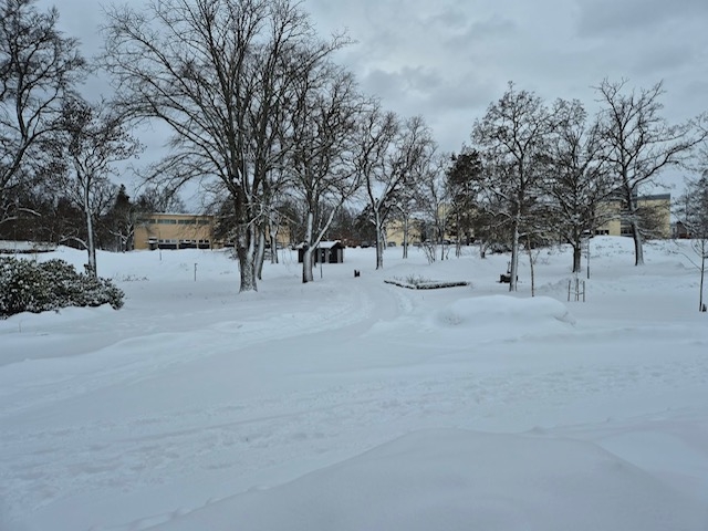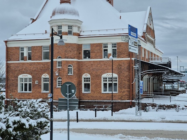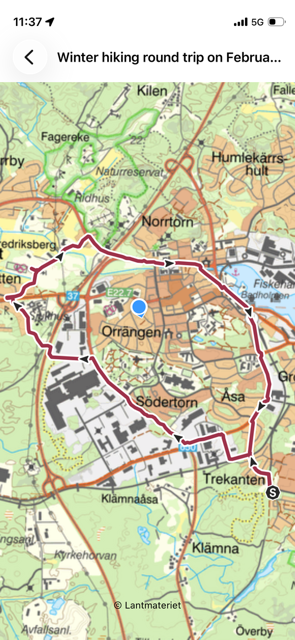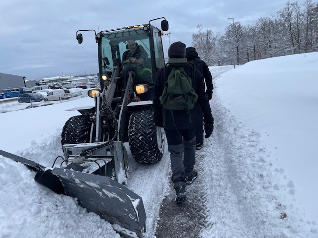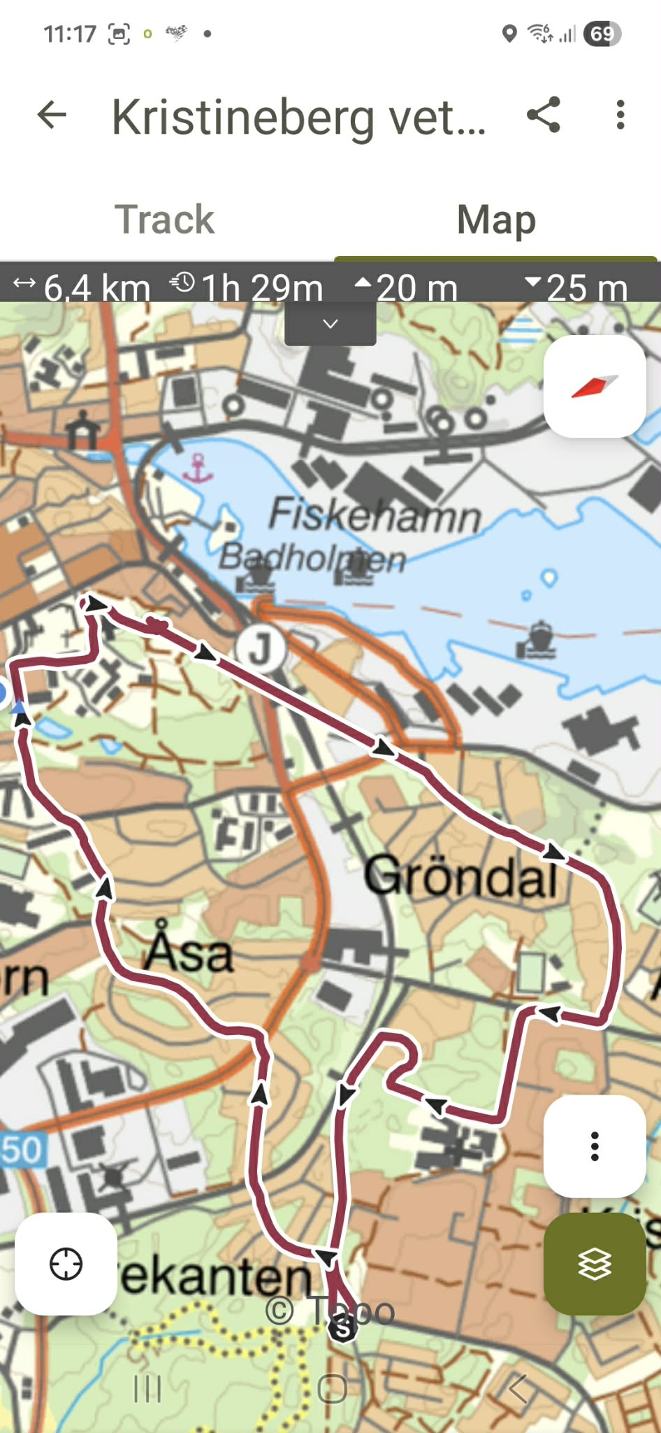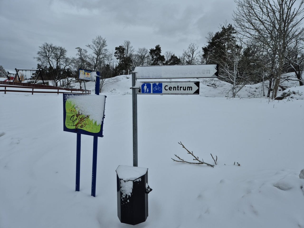 Vandring från Kristineberg via Fredriksberg och hamnen. Mulet och någon minusgrad, bitvis lite moddigt på oplogade gångbanor. Långa med 13 man gick 9,3 km och korta 6,4 med 3 man.