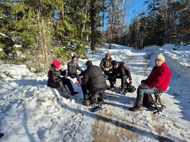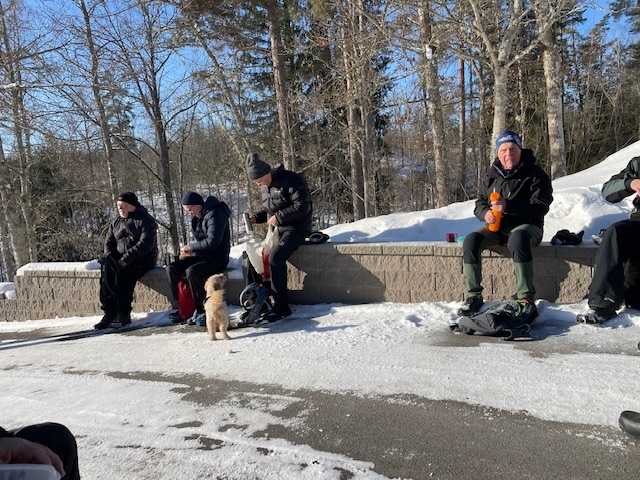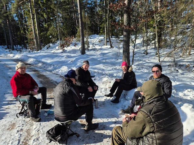 Strålande sol och en underbart fin vinterdag med minus 11 vid start och minus 4 vid målgång. Start vid Viljans stuga och långa gick söderut och vände vid Eckern, 7,8 km 11 man. Korta gick norrut och vände vid Småfällorna, 6 km 7 vandrare.