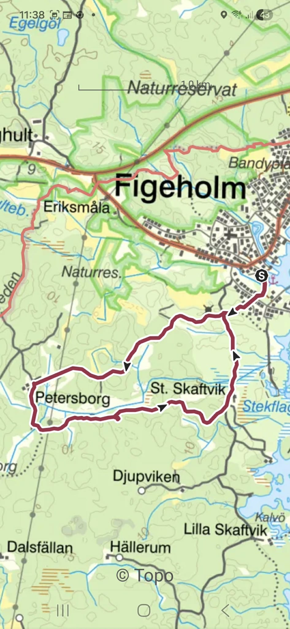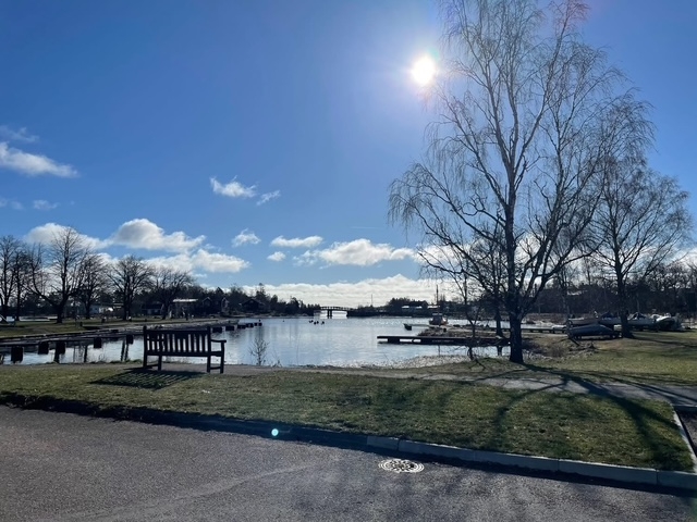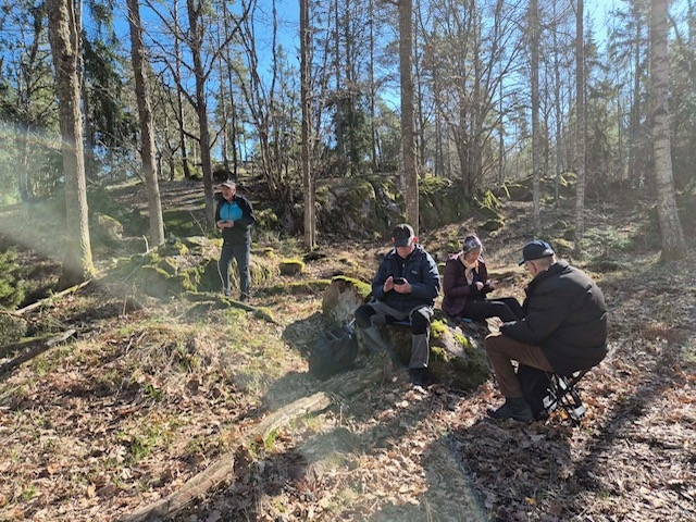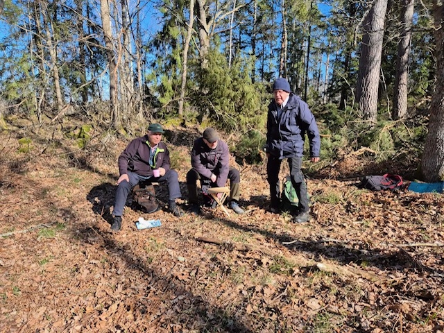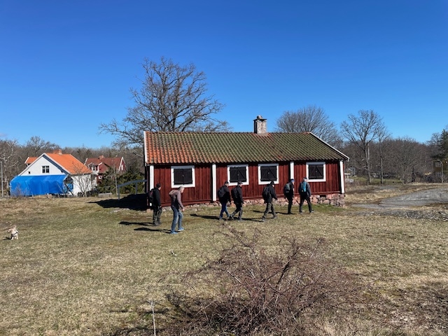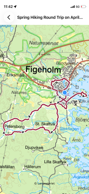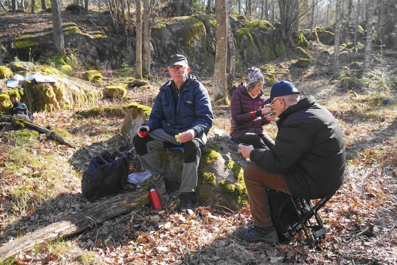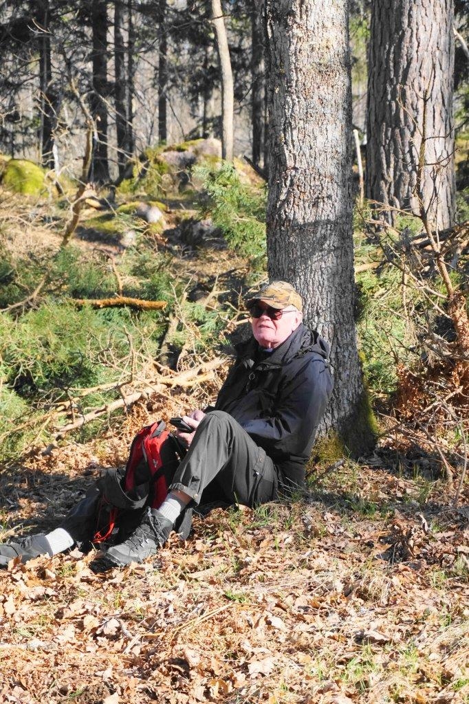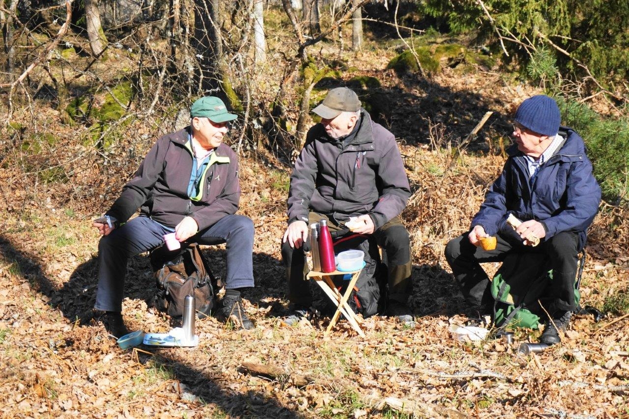 Solig men lite kylig vandring 5-7 grader. Start i hamnen i Figeholm och vandring till Petersberg, Stora Skaftvik, Äspö och Hembygdsgården. Långa 9 km med 23 vandrare och korta 5,7 km med 10 st.