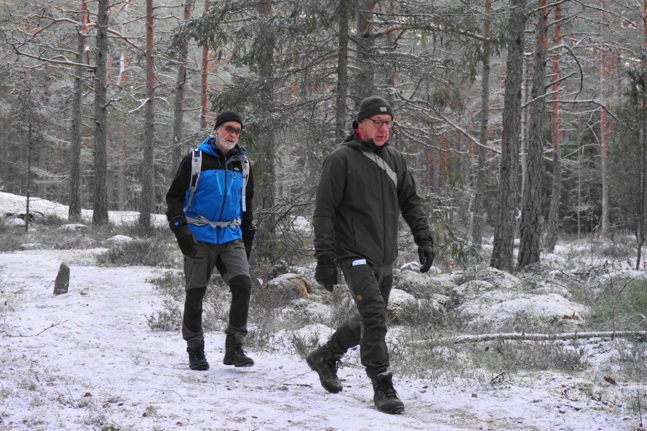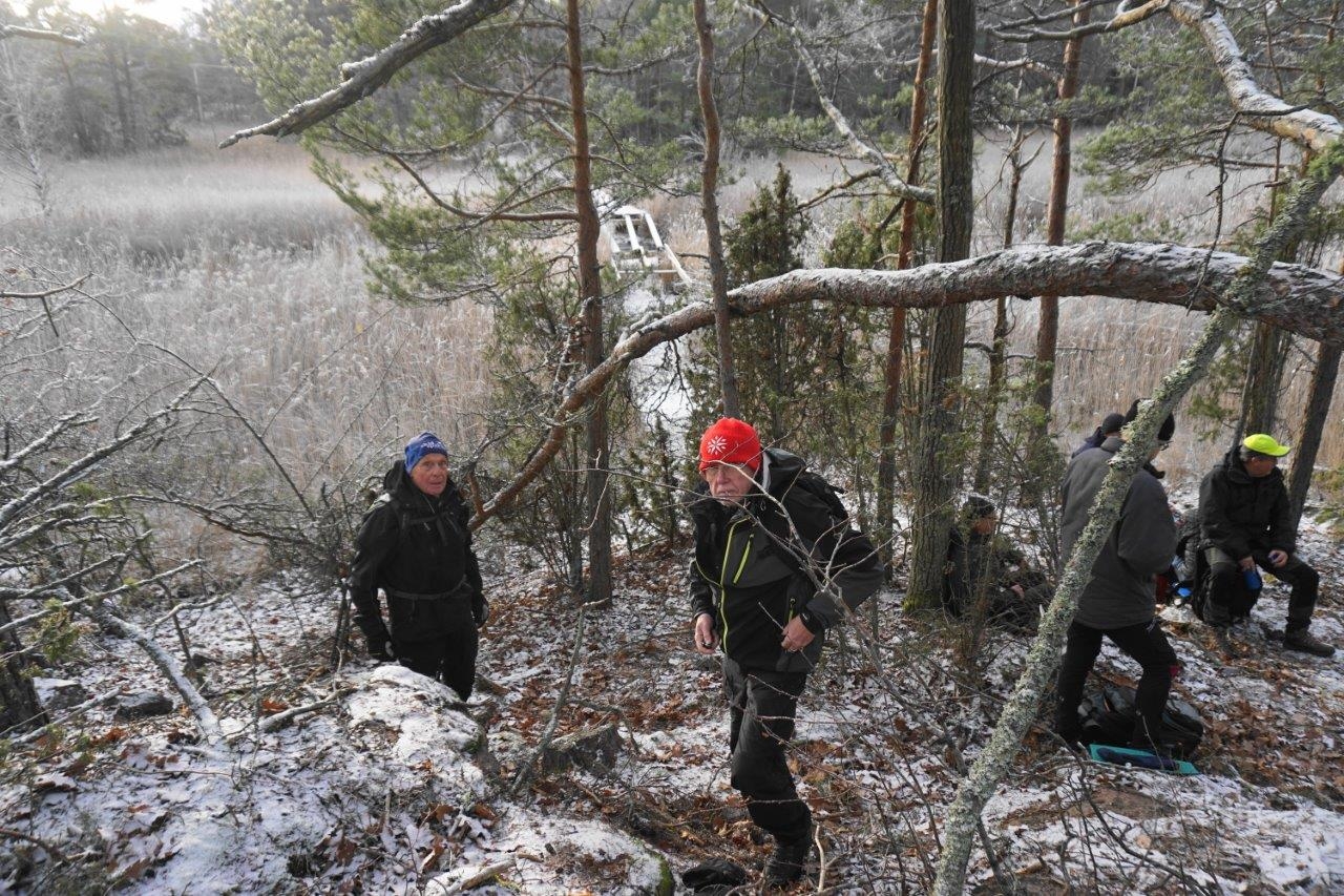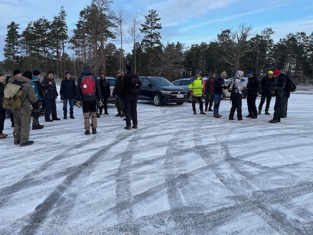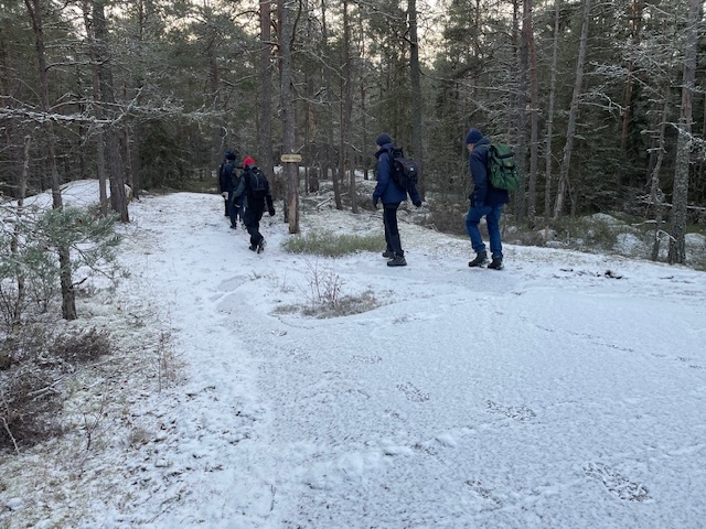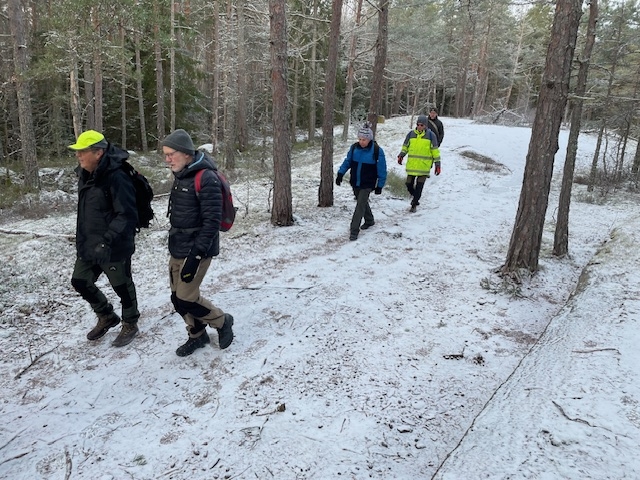 Vintervandring i Gunnarsöområdet med 15 vandrare på långa - 6,5 km och 6 vandrare på korta. Lätt pudersnö på marken och ett fåtal minusgrader.
